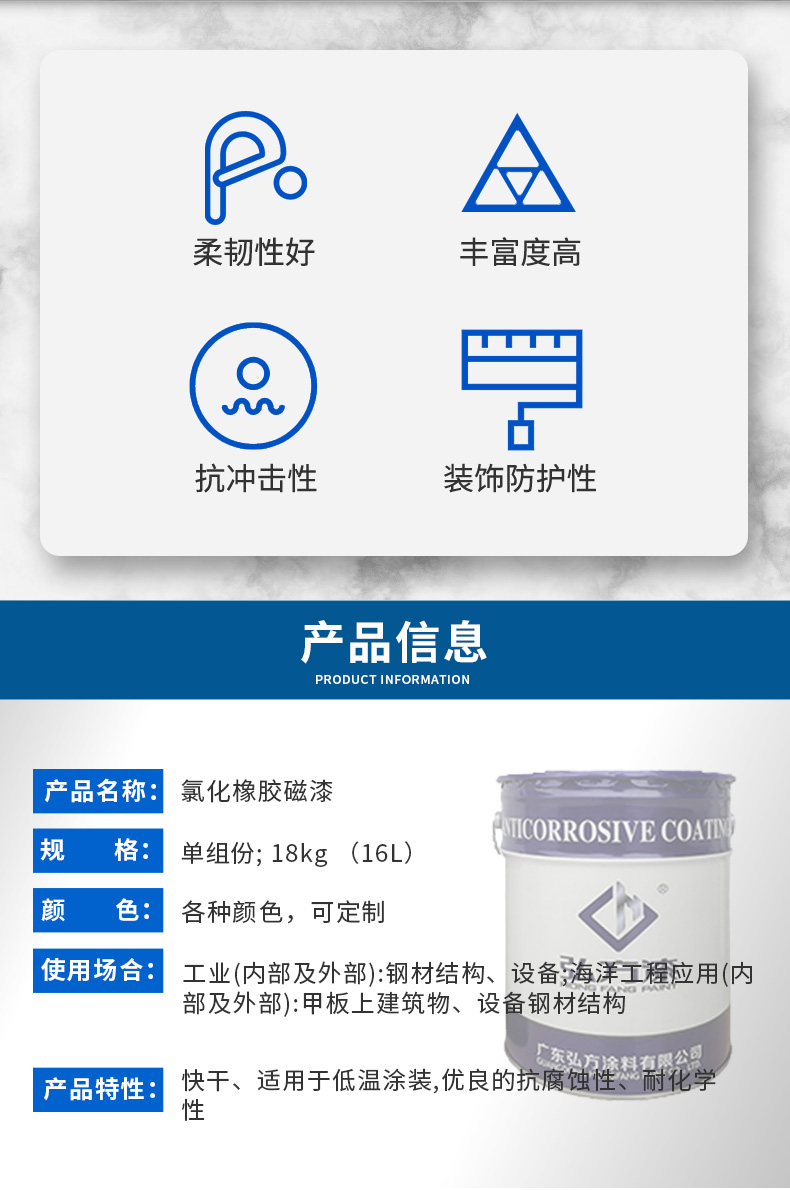 氯化橡胶漆 混凝土桥梁防腐涂料 船舶化工设备防腐漆 弘方工业油漆